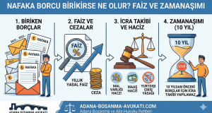 Türkiye’de 2026 yılı itibarıyla yaklaşık 180 bin kişi nafaka ödemekle yükümlü durumda ve bu rakamın %65’inde en az 3 aylık nafaka borcu birikmiş bulunuyor. Nafaka ödemelerinde aksamalar yaşandığında hukuki ve finansal sonuçlar domino etkisi gibi birbiri ardına gelmeye başlıyor. Nafaka borcu birikiminin doğurabileceği sonuçları ve alınması gereken önlemleri sırasıyla inceleyelim: Nafaka Borcunun Hukuki Sonuçları İcra Takibinin Başlatılması Nafaka alacaklısı, birikmiş ...